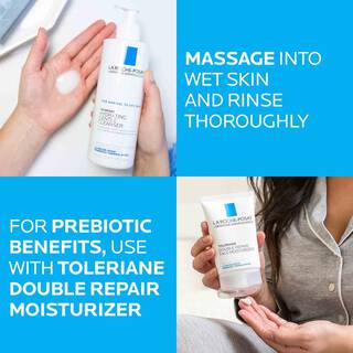 Step 1: In the morning and evening, cleanse skin thoroughly using the Toleriane Hydrating Cleanser.